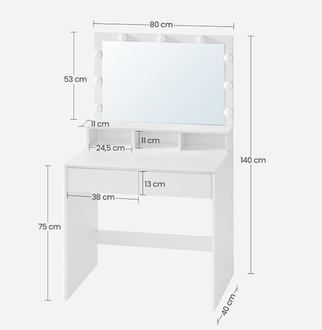 BeComfort HT16-3 Masa de toaleta moderna 140 x 40 x 80 cm, alb