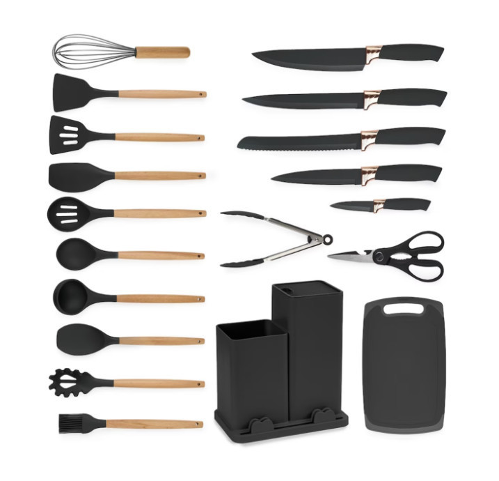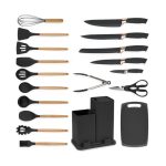 Set de 19 ustensile de bucătărie din silicon negru KE01