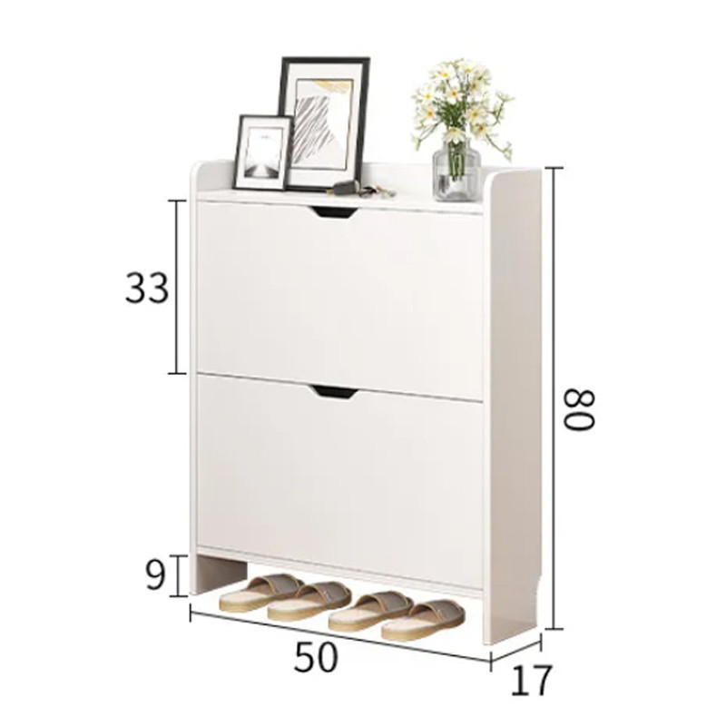 O piesă de mobilier unică pentru hol, cu spațiu de depozitare convenabil pentru pantofi și accesorii. Acest dulap pentru pantofi are un stil atemporal. Are 2 sertare practice în partea de sus, cu spațiu de depozitare ideal. Partea inferioară are trei rafturi pentru pantofi. Special conceput pentru a depozita pantofii uscați. Are uși "swinging" care se deschid de sus în jos.